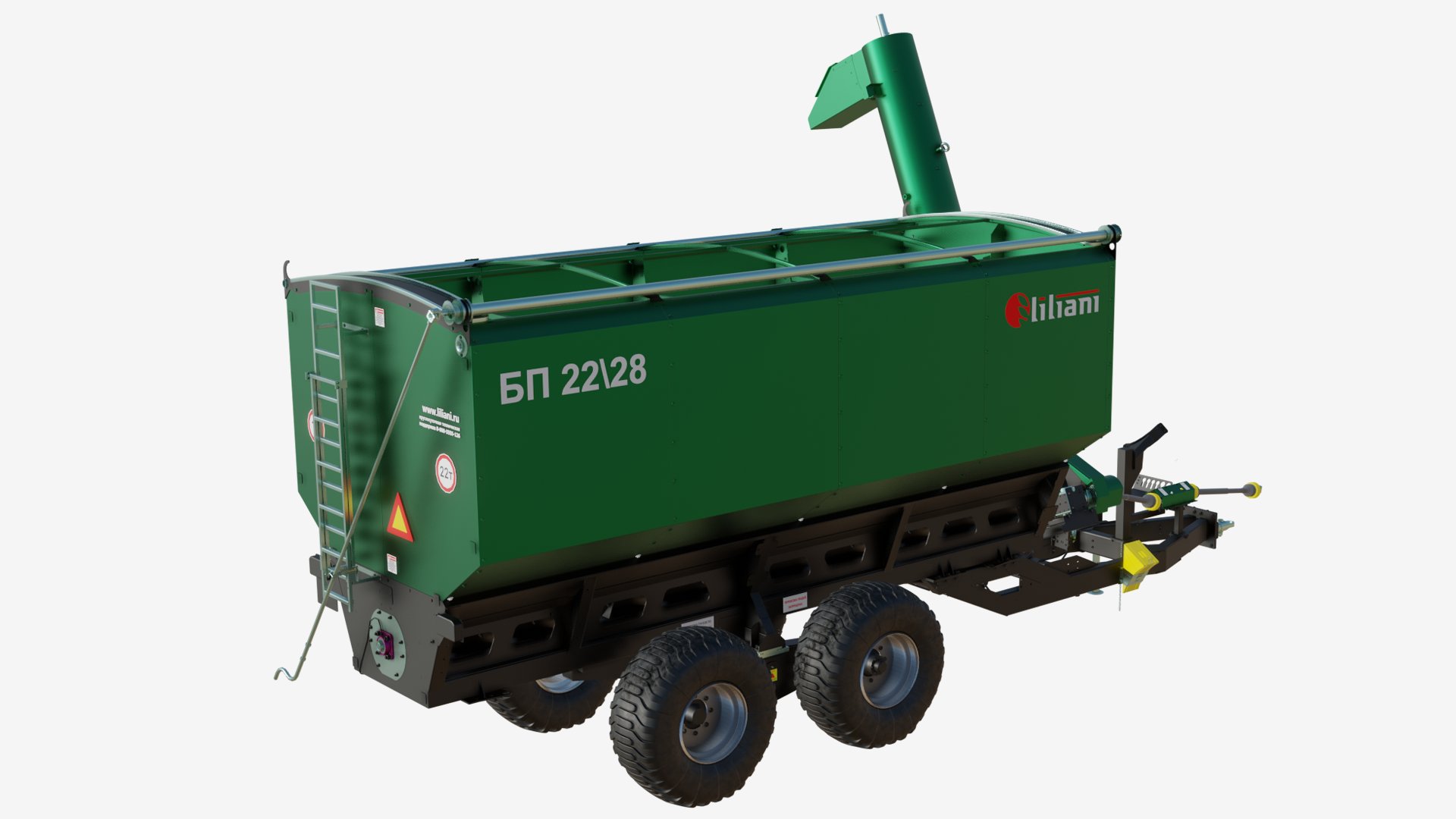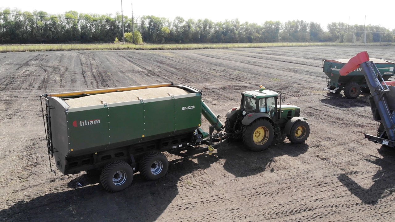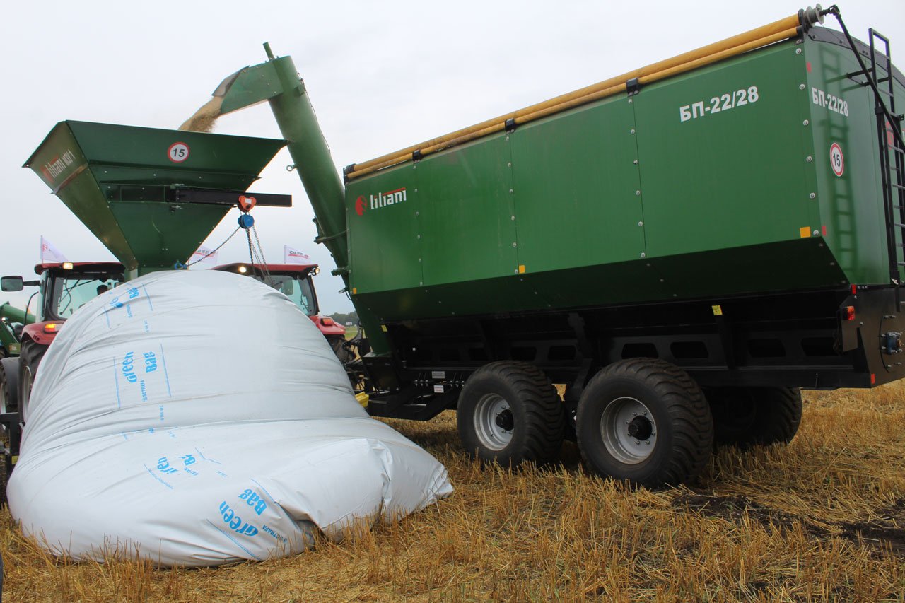 Бункер-перегрузчик БП-22/28 ЛИЛИАНИ эффективно применяют при уборке зерновых, зернобобовых, масличных с/х культур, севе, разбрасывании удобрений, загрузке зерном ж/д вагонов, при упаковке зерна на хранение в полимерных рукавах и др.