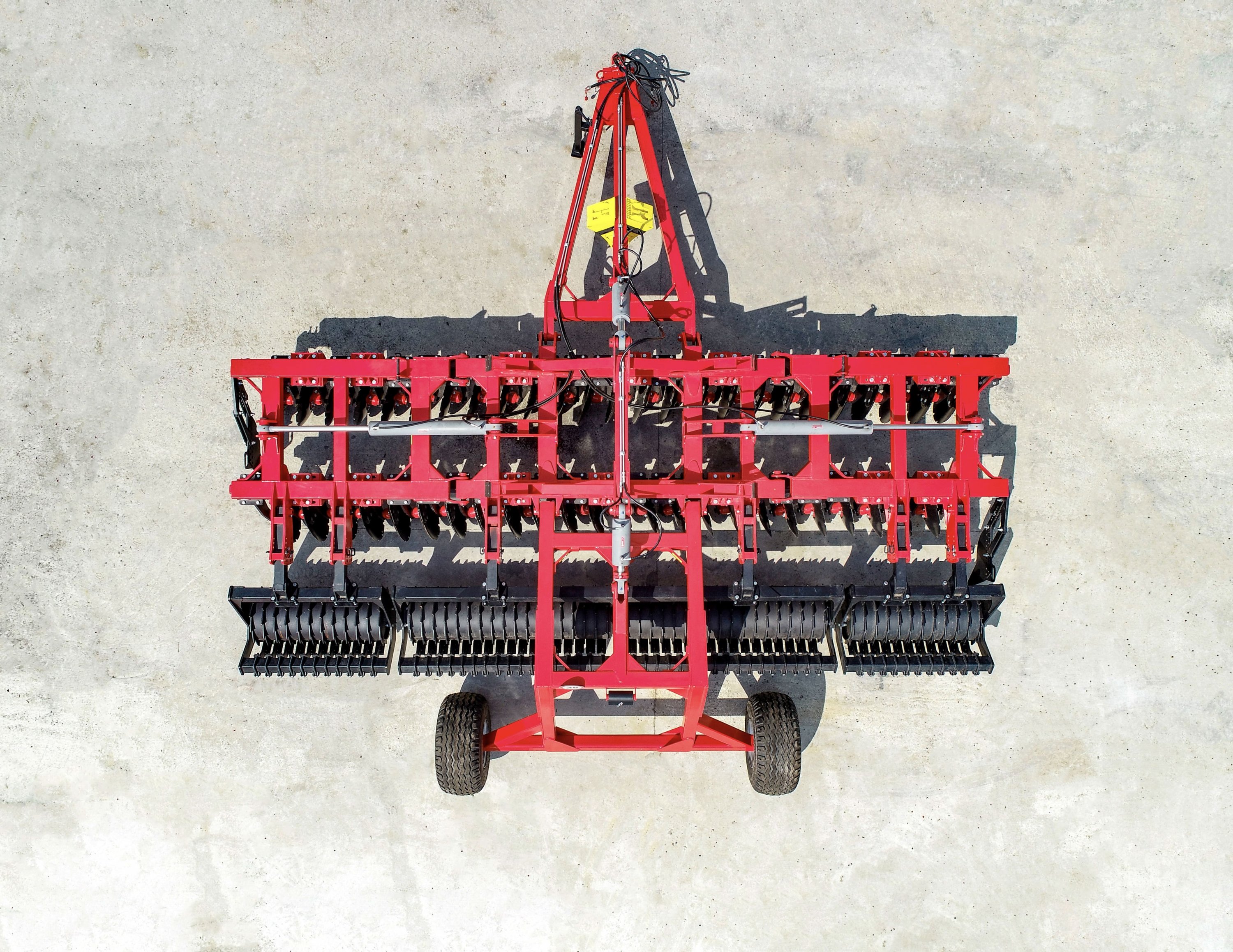 Сферические диски SOLAR диаметром 565 мм толщиной 6 мм с двойной заточкой. Ступица режущего узла оснащена роликовым двухрядным подшипником с заложенной смазкой. Угол атаки каждого диска регулируется дискретно в четырех положениях от 11 до 20 градусов.